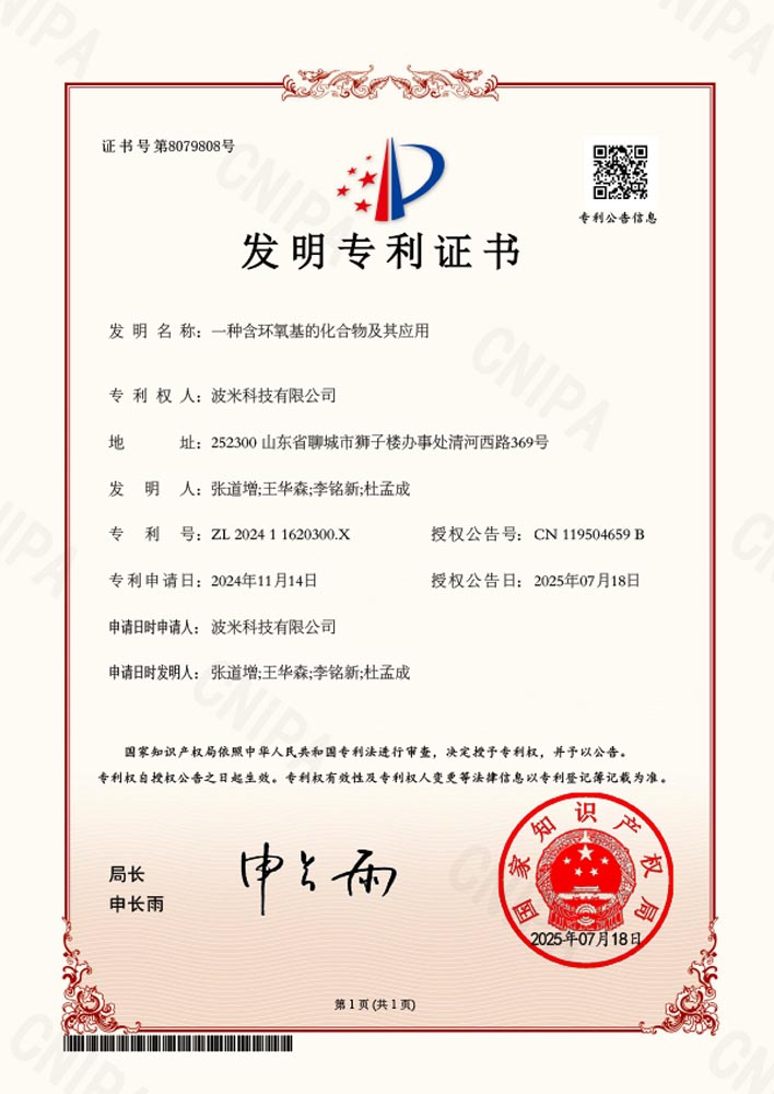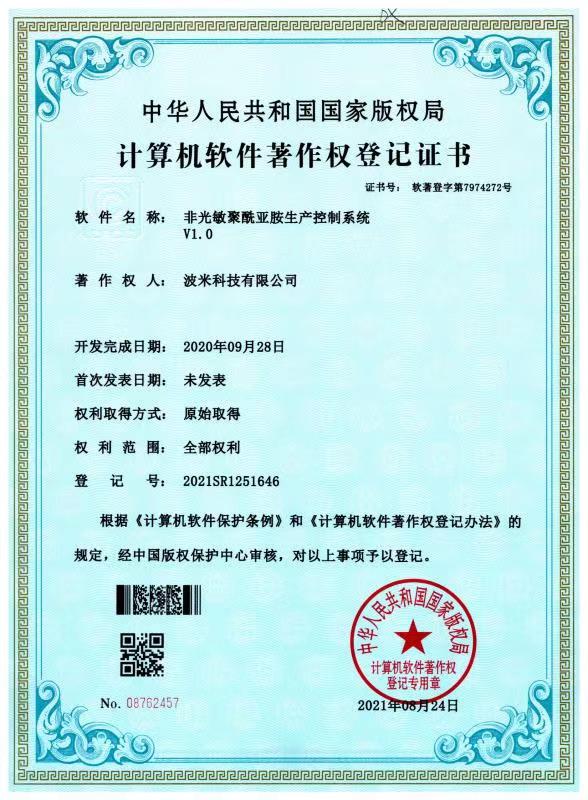 波米依托山東省院士工作站、山東省顯示與集成電路用聚酰亞胺涂層膠重點(diǎn)實(shí)驗(yàn)室(籌)等研發(fā)平臺(tái),承擔(dān)了國(guó)家級(jí)關(guān)鍵技術(shù)攻關(guān)項(xiàng)目1項(xiàng)、山東省重點(diǎn)研發(fā)計(jì)劃(重大科技創(chuàng)新工程)4項(xiàng)、省市縣級(jí)重點(diǎn)研發(fā)項(xiàng)目10余項(xiàng)。公司已累計(jì)申報(bào)核心專(zhuān)利75項(xiàng)(其中52項(xiàng)發(fā)明專(zhuān)利已獲授權(quán),23項(xiàng)發(fā)明專(zhuān)利處于實(shí)質(zhì)審查階段)。